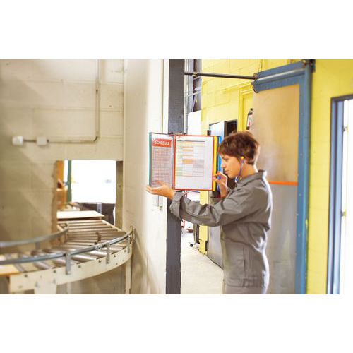 Tilpas stativet efter behov – mulighederne er uendelige! Vægstativet passer ind i alle typer rum. Gør det let at finde rundt i dine dokumenter ved hjælp af etiketholdere med indstiksblade i forskellige farver. Leveres med 10 præsentationslommer i A4-format, 5 etiketholdere (50 mm) med ufarvede og farvede indstiksblade, 4 sidestøtter og monteringsmateriale. Fremstillet i EU