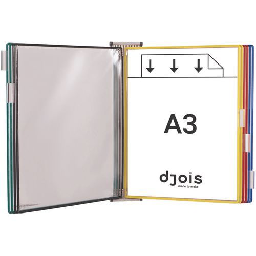 Tilpas stativet efter behov – mulighederne er uendelige! Vægstativet passer ind i alle typer rum. Gør det let at finde rundt i dine dokumenter ved hjælp af etiketholdere med indstiksblade i forskellige farver. Leveres med 10 præsentationslommer i A3-format , 5 etiketholdere (50 mm) med ufarvede og farvede indstiksblade, 4 sidestøtter og monteringsmateriale.