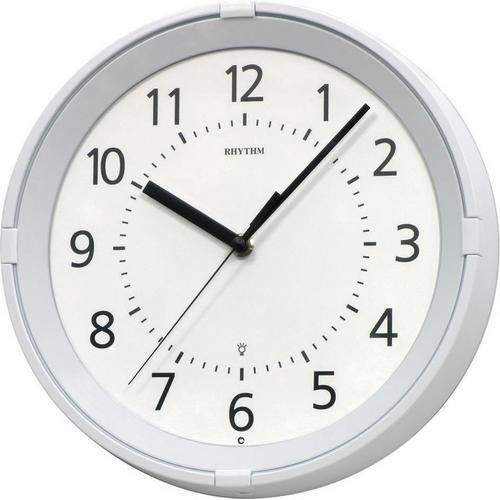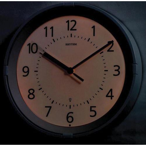 - Rhythm vægur med oplyst urskive. Når mørket falder på aktiveres lyssensoren, der tænder urskiven og giver et behageligt lysskær, når det bliver mørkt. Passer f.eks. i hospitalsmiljøer. Har en hvid ramme og en tydelig urskive.