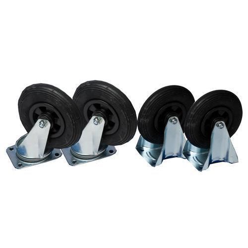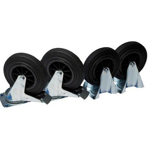 Du vælger selv, hvilken slags hjul du ønsker. Massive gummihjul Ø x B: 200 x 50 mm / Massive gummihjul, med bremse Ø x B: 200 x 50 mm / Elastiske hjul Ø x B: 200 x 50 mm / Luftgummihjul Ø x B: 260 x 85 mm. Tilbehør til Vogne.
