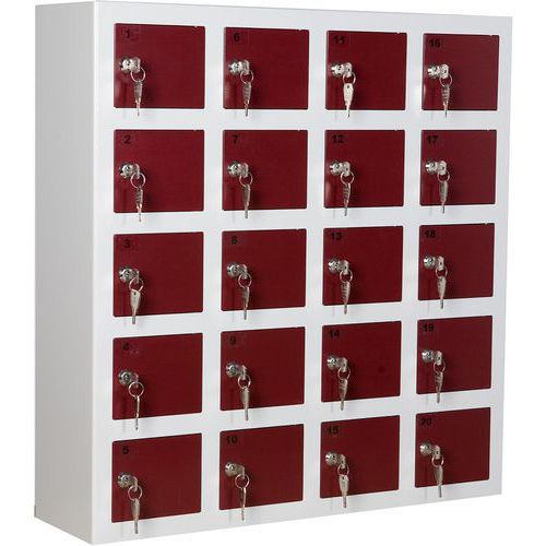 | Varenavn | Mobillageringsskab, 20 fag, Materiale: Stål, Antal rum/søjle: 20, Bredde: 750 mm, Dybde: 200 mm |