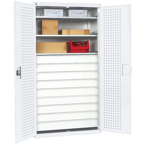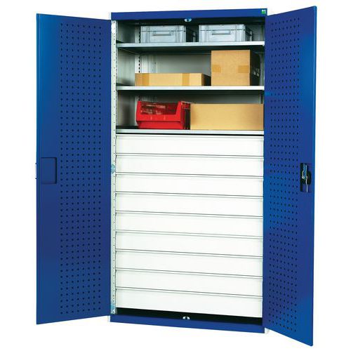 | Varenavn | Værkstedsskab med skuffer Bott SMF – 9 skuffer, Maksimal last: 1500 kg, Totalhøjde: 2000 mm, Antal skuffer: 9 |