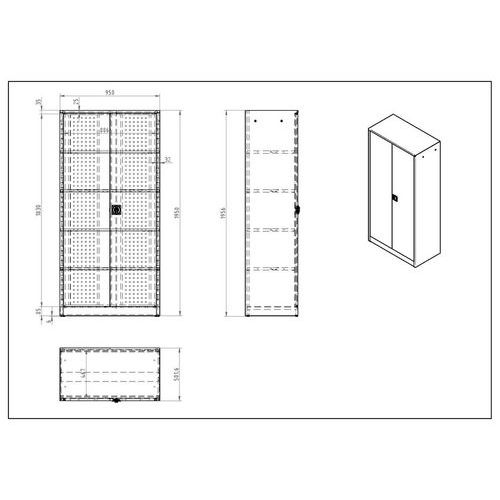 | Varenavn | Værkstedsskab i metal, Maksimal last: 200 kg, Materiale: Stål, Totalhøjde: 1950 mm, Totalbredde: 950 mm |