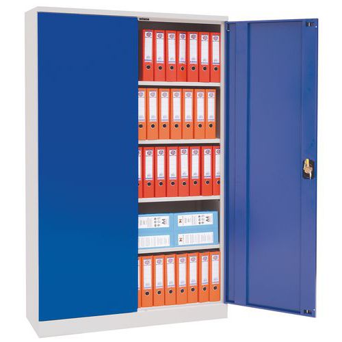 - Højt værkstedsskab med 4 hylder, der er let at samle, i flad pakke.