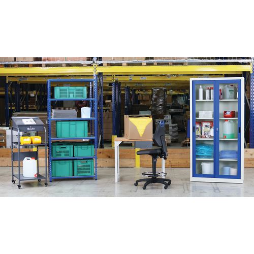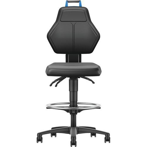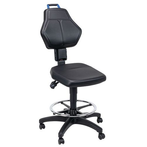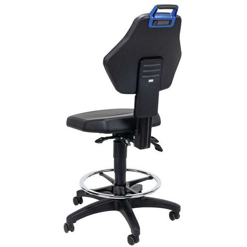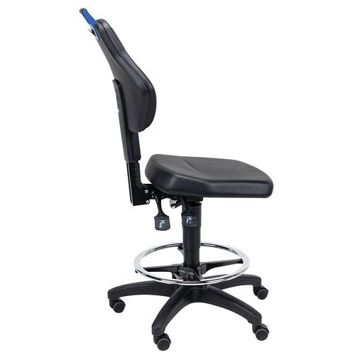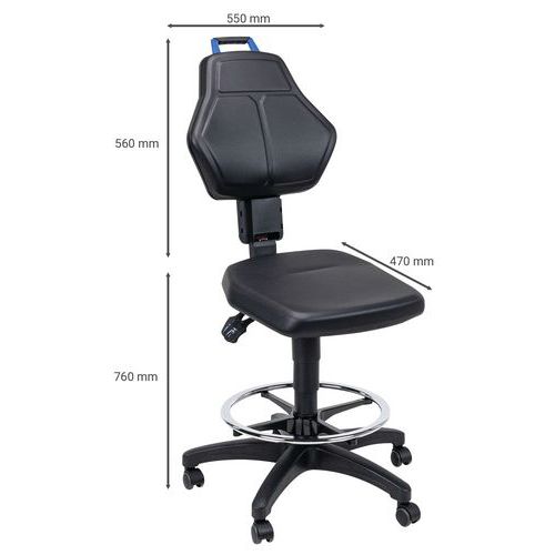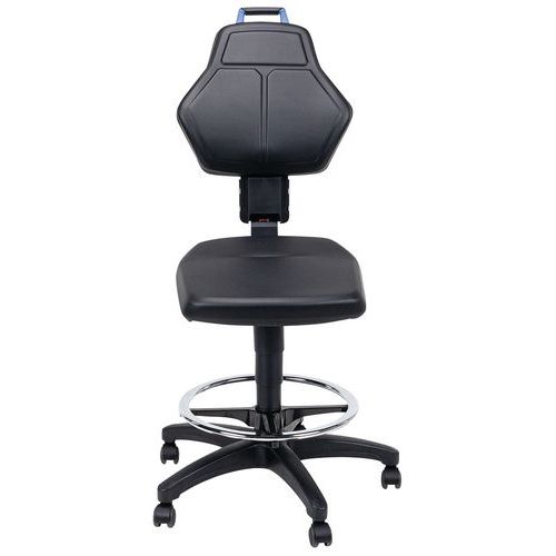 | Varenavn | Værkstedsstol, Sæde, materiale: Kunstlæder, Ryglæn: ja, Sæde model: Høj, Fodring Ø: ja |
