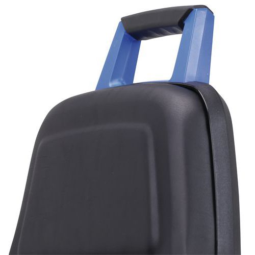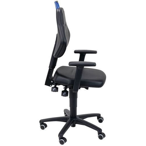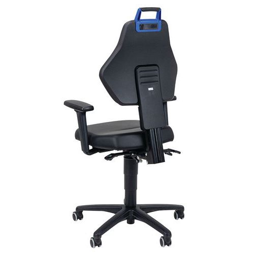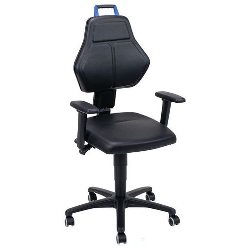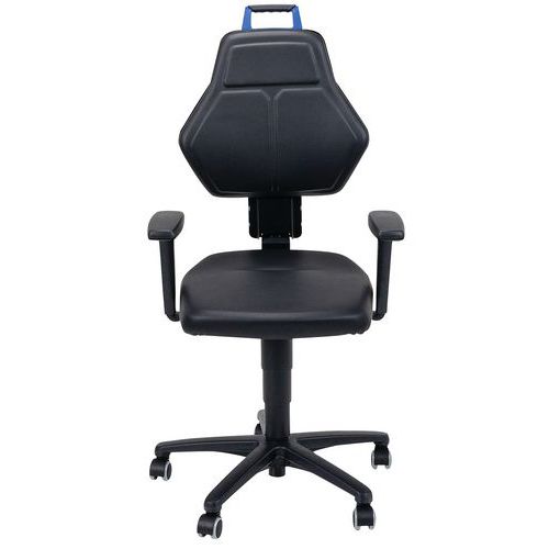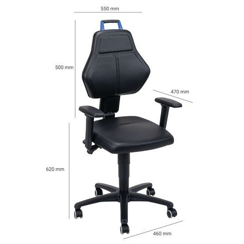 | Varenavn | Værkstedsstol i kunstlæder, med hjul , Sæde, materiale: Kunstlæder, Ryglæn: ja, Sæde model: Lav |