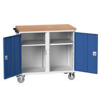 Værkstedsvogne Verso med 30 mm massiv multiplexhylde. Centrallås med 2 nøgler. Skuffer med kuglelejer og udtræksstop. Kraftige hjul, heraf to med bremser. Galvaniserede stålhylder, der kan justeres i højden.