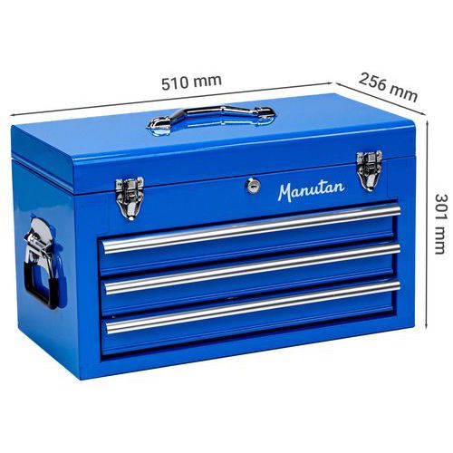 | Varenavn | Værktøjskasse 3 skuffer, Maksimal last: 45 kg, Låsbar lukning: nej, Totalhøjde: 301 mm, Totalbredde: 256 mm |