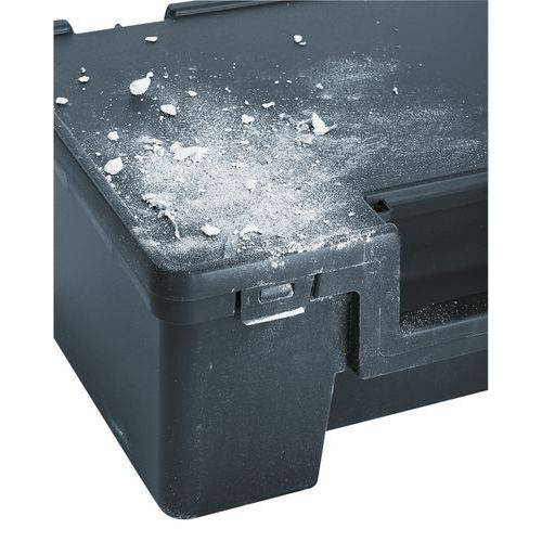 Beskyttelse mod vandstænk og støv. Stabelbar værktøjskasse. Stort transporthåndtag. Kan låses med hængelås. Udformet efter europæiske normer for lastpaller. Fremstillet i EU Maksimal last (kg) : 35