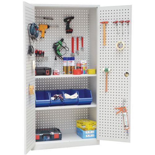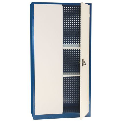 Bagvæg og låger er perforerede. Hylden kan justeres i højden i trin på 3,6 cm. Aflåselige låger: topunktslukning og cylinderlås. Praktisk opbevaring takket være lågerne, der kan åbnes 180°. Leveres med 1 sæt kroge, -hylder og -opdelere.