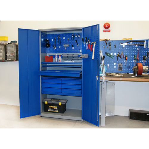 | Varenavn | Værktøjsskab Standard, Maksimal last: 420 kg, Materiale: Stål, Totalhøjde: 2000 mm, Totalbredde: 1020 mm |