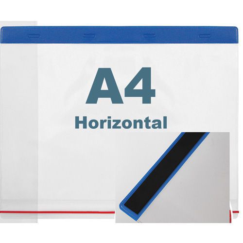 Vælg mellem 3 fastgørelsesmuligheder: magnetisk, selvklæbende eller med fastgørelsesstrop. Hullerne i panelet foroven gør det muligt at sætte lommen ind i et ringbind med 2 eller 4 ringe. Ideelle til brug på udendørs stativer. Disse lommer i industrikvalitet er ikke kun til brug indendørs. På grund af den vejrbestandige, forseglende tryklukning, er de også ideelle til udendørs brug. Lommerne har plads til papirer i A4-størrelse samt kuglepenne og andre nødvendige ting. Perfekt til at holde vigtige dokumenter rene og tørre. Lommerne fås i liggende eller stående format og er enten magnetiske eller selvklæbende eller fastgøres med stropper. Magnetversionen kan anvendes på de fleste stålflader og kan ganske enkelt løftes og omplaceres efter behov. Den selvklæbende version fastgøres permanent, og fastgørelsesstroppen kan sættes rundt om en diameter på højst 60 mm, hvilket gør denne version ideel til plukvogne, rullebure og trådbure. Holder dokumenter rene og tørre. Tryklukningen, som forsegler lommen, gør lommerne ideelle til brug på steder, der udsættes for vind og regn. Stående eller liggende A4-forma.