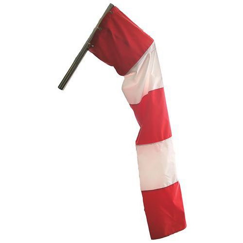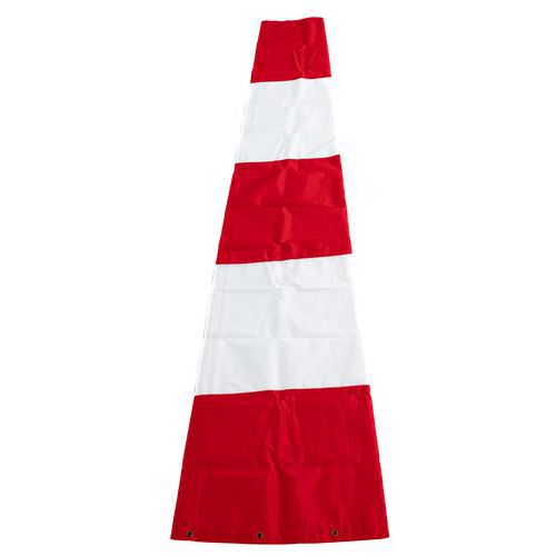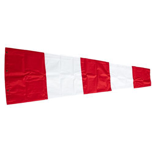 - Når vindposen med de skiftevis orange og hvide striber fyldes med luft, svarer det til en anslået vindhastighed på 5 knob (ca. 9 km/t).
