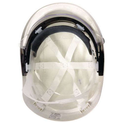 Brugeren kan bære briller under denne sikkerhedshjelm takket være dens indbyggede, formstøbte øjenskærm, der er klasse A-certificeret til høje stødniveauer, så brugeren kan arbejde i fuld sikkerhed.