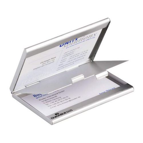 | Varenavn | Visitkortetui Duo, Farve: Sølv, Kort, længde: 90 mm, Kort, højde: 55 mm, Materiale: Aluminium |