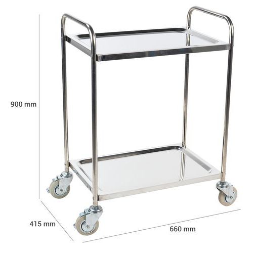 | Varenavn | Vogn i rustfrit stål, Kapacitet: 100 kg, Totalhøjde: 900 mm, Totalbredde: 415 mm, Totallængde: 660 mm |
