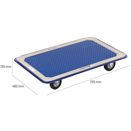 Stødabsorberende gummilister omkring kanterne. Robust konstruktion. Transporthund med skridsikker måtte. Stødabsorberende gummilister omkring kanterne. Kapacitet (kg) : 300 Garanti : 10 år