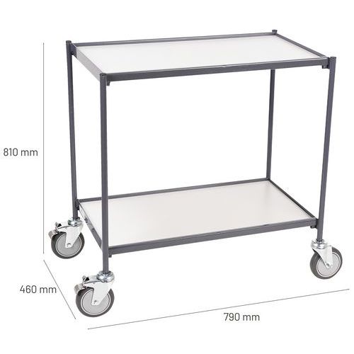 | Varenavn | Vogn med træhylder, Hjul, Ø: 125 mm, Kapacitet: 200 kg, Totalhøjde: 810 mm, Totalbredde: 460 mm, Hjul |