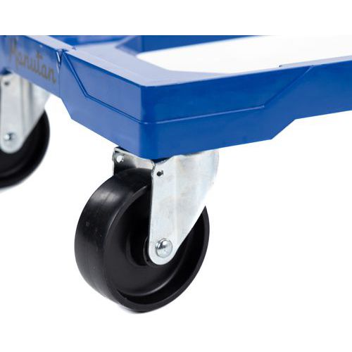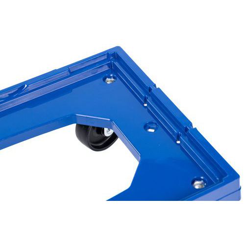 Stabelbare og pladsbesparende traller i plast. Høj stabilitet takket være kanterne. Let at rengøre, i ABS. Perfekt rullestøtte til transport af dine Europastandard-kasser.