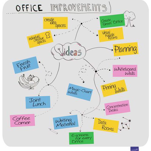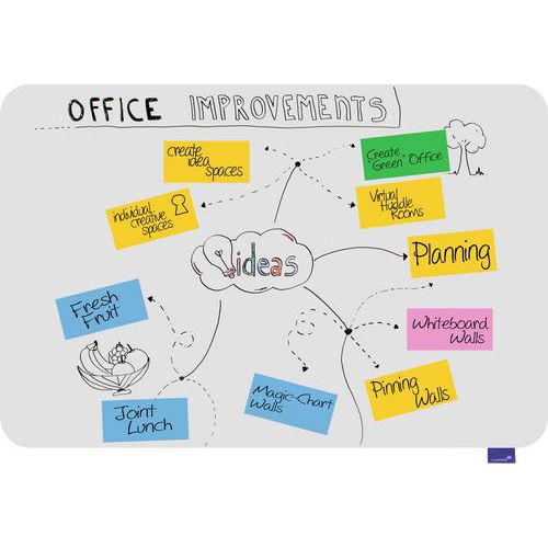 - Den magnetiske emaljeoverflade er ridsefast, nem at skrive på med tørviskelige whiteboardpenne og let at rengøre.