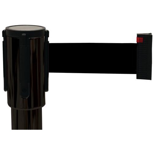 Perfekt til organisering af køområder og styring af menneskemængder. Afspærringsbarrierernes bånd kan trækkes helt tilbage og har et selvlåsende system. Trækkes roligt ud for at undgå uheld. Gummifod giver stabilitet. Fås med rødt, blåt, gult/sort, rødt/hvidt eller sort bånd.